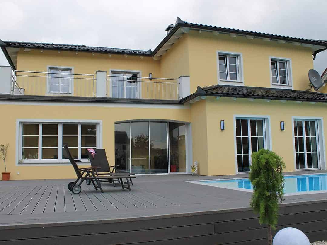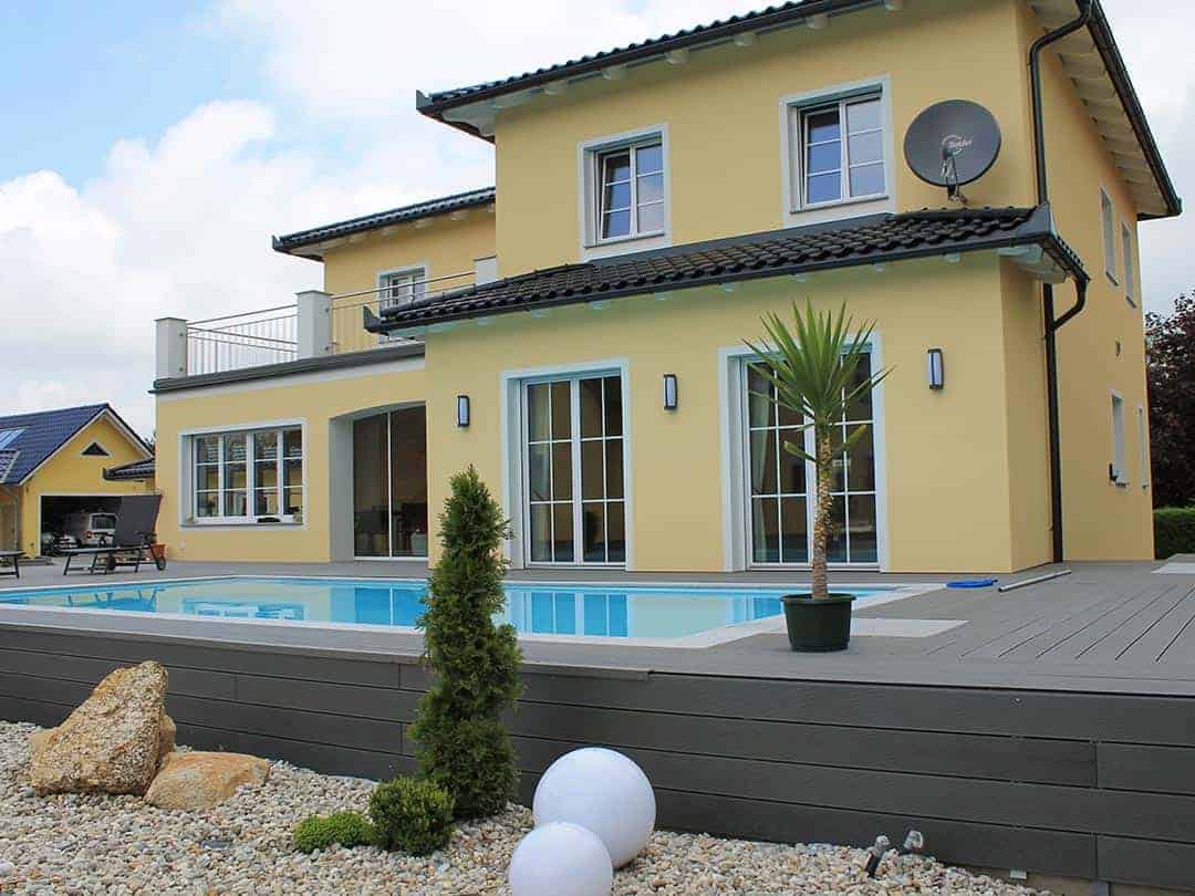 Die moderne Architektur mit großen Glaselementen verleiht dem Haus seine unverwechselbare Erscheinung. Großflächige Fensterfronten schaffen helle, lichtdurchflutete Räume und öffnen den Blick in den großzügigen Garten. Hier lädt ein stilvoll angelegter Pool zum Entspannen und Erholen ein – ein Ort, der zugleich Ruhe schenkt und ein exklusives Urlaubsgefühl im eigenen Zuhause ermöglicht.