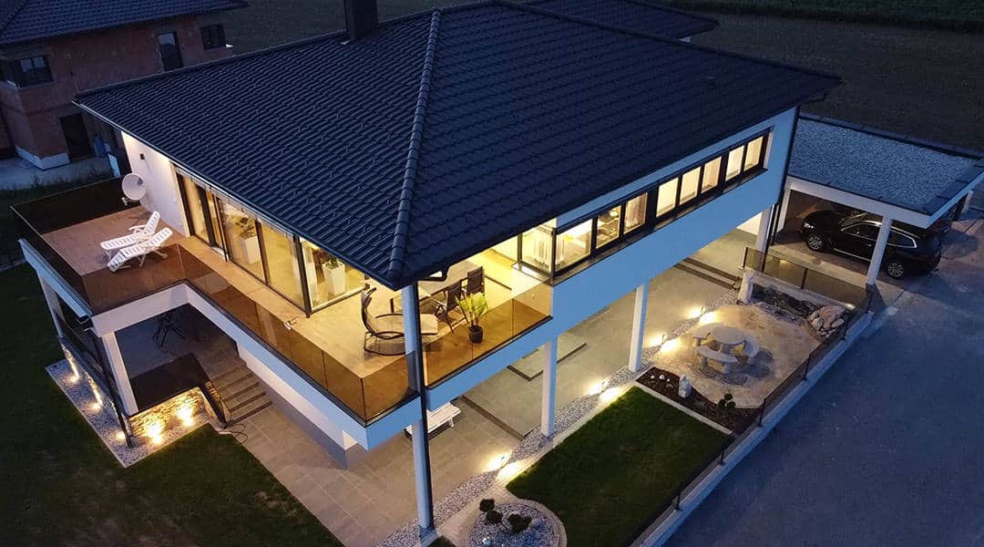 Große Fenster sorgen für viel Tageslicht und bieten einen harmonischen Blick in den Außenbereich.